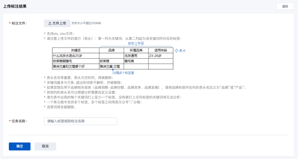 - 上传标注结果,离线完成对关键词的标签标注,以Excel形式上传