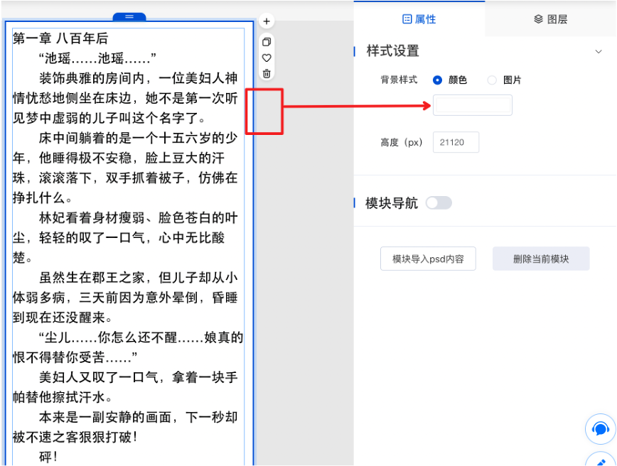 (4)如需修改页面底色,点击文本组件外部的区域,进入到空白组件,在右侧属性区【背景样式】处修改颜色即可。