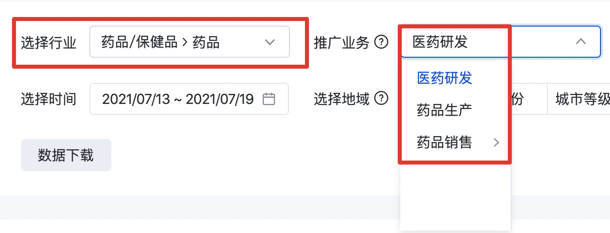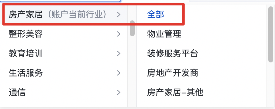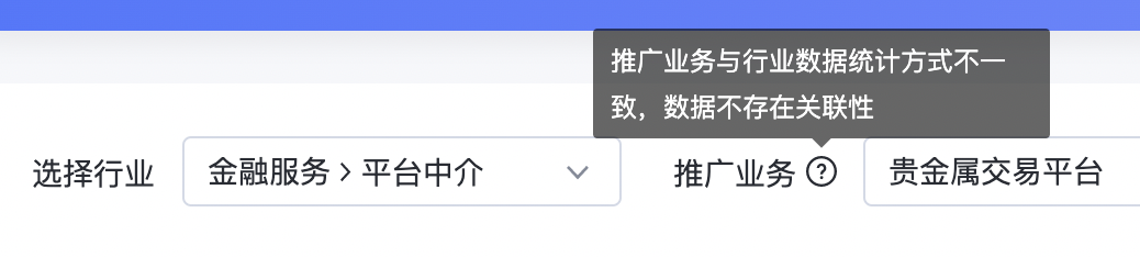 部分行业推广业务无暂无选择选项,表示无法查看二级行业流量