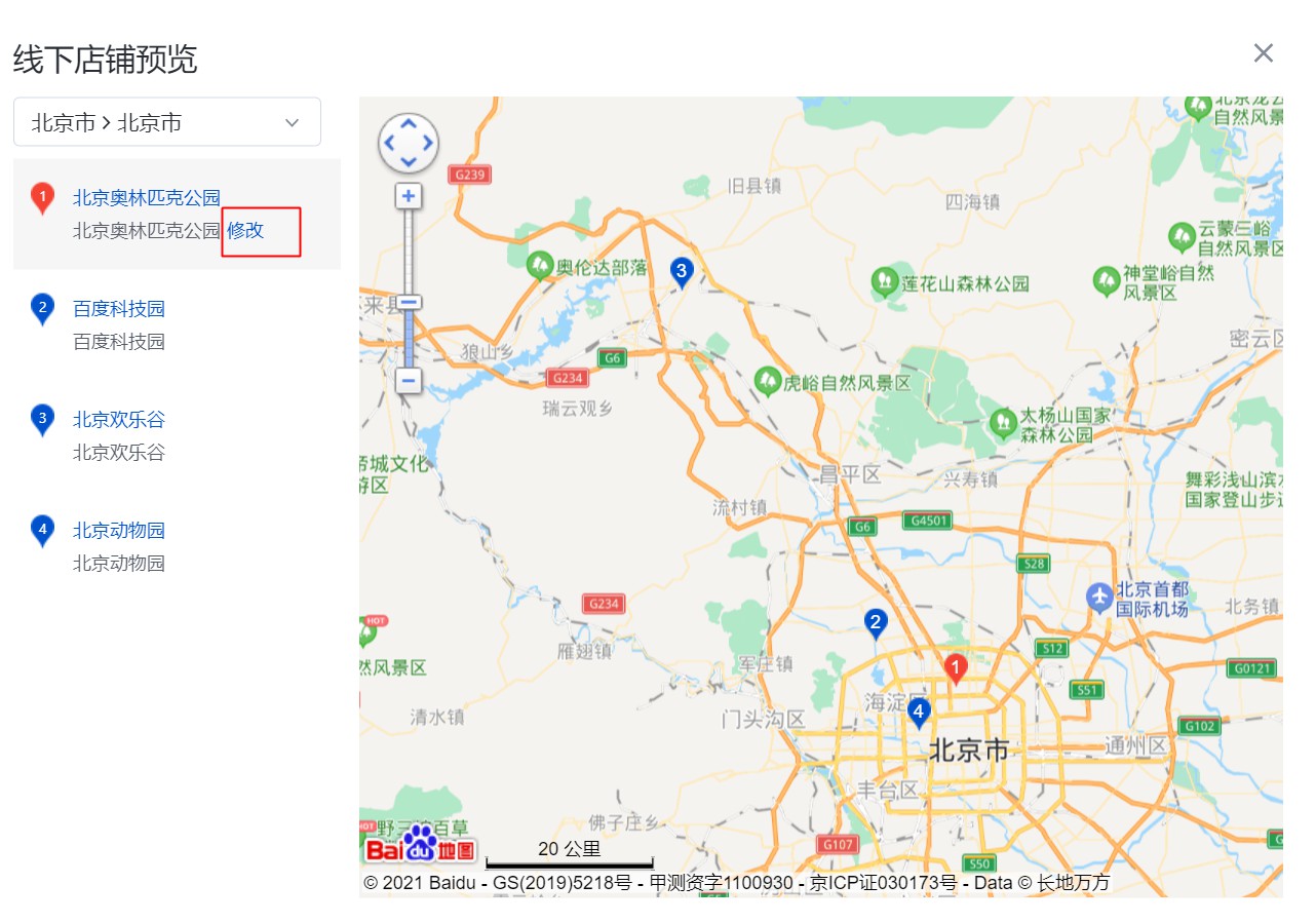 第三步:确认地址定位:内容完成上传后,在门店预览可进行地址修改,进行位置确认;