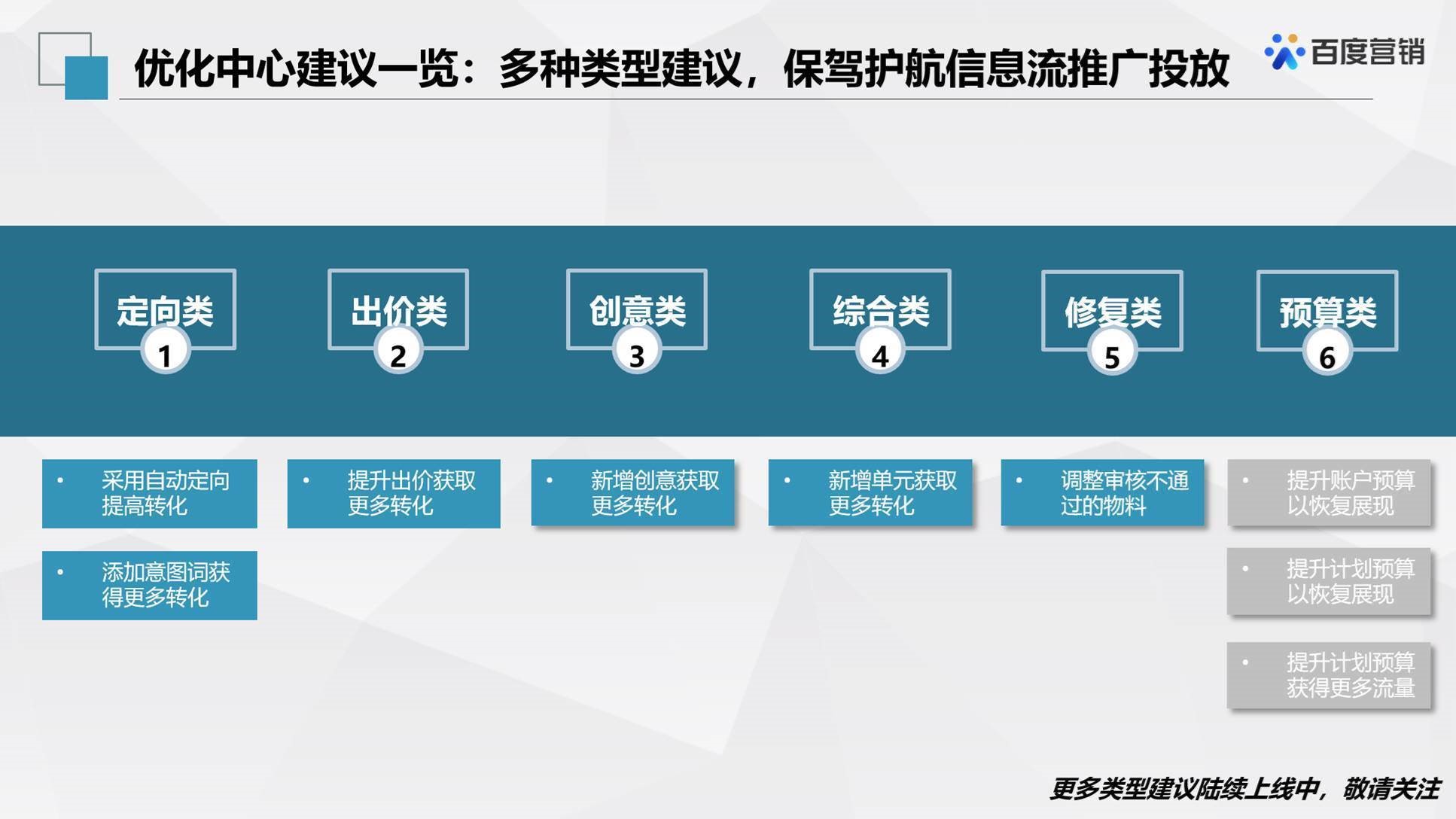 信息流优化中心新增创意类、综合类、修复类优化建议卡片全流量上线