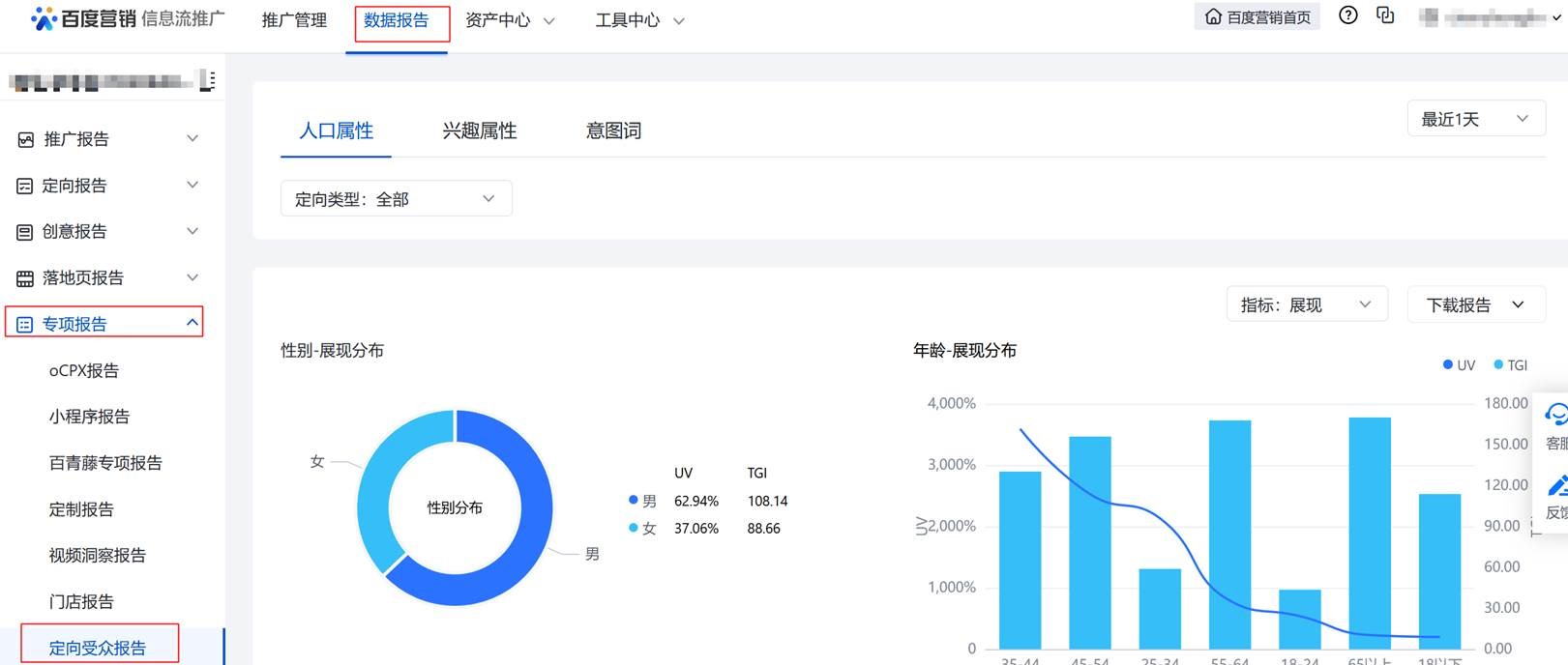 2.1 功能入口:信息流数据报告-专项报告-定向受众报告;