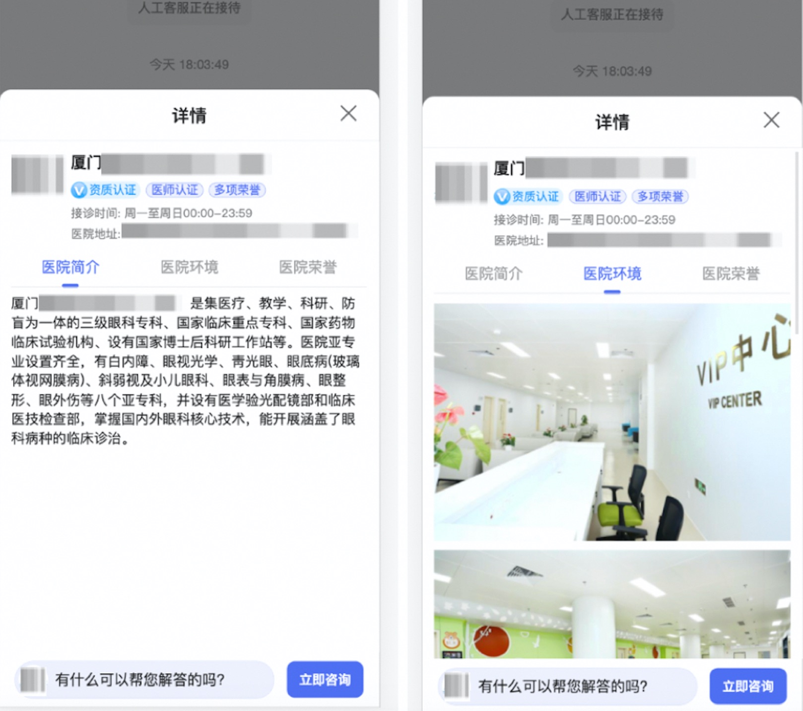 b、医美:包含“认证医院”、“品牌授权”、“多项荣誉”