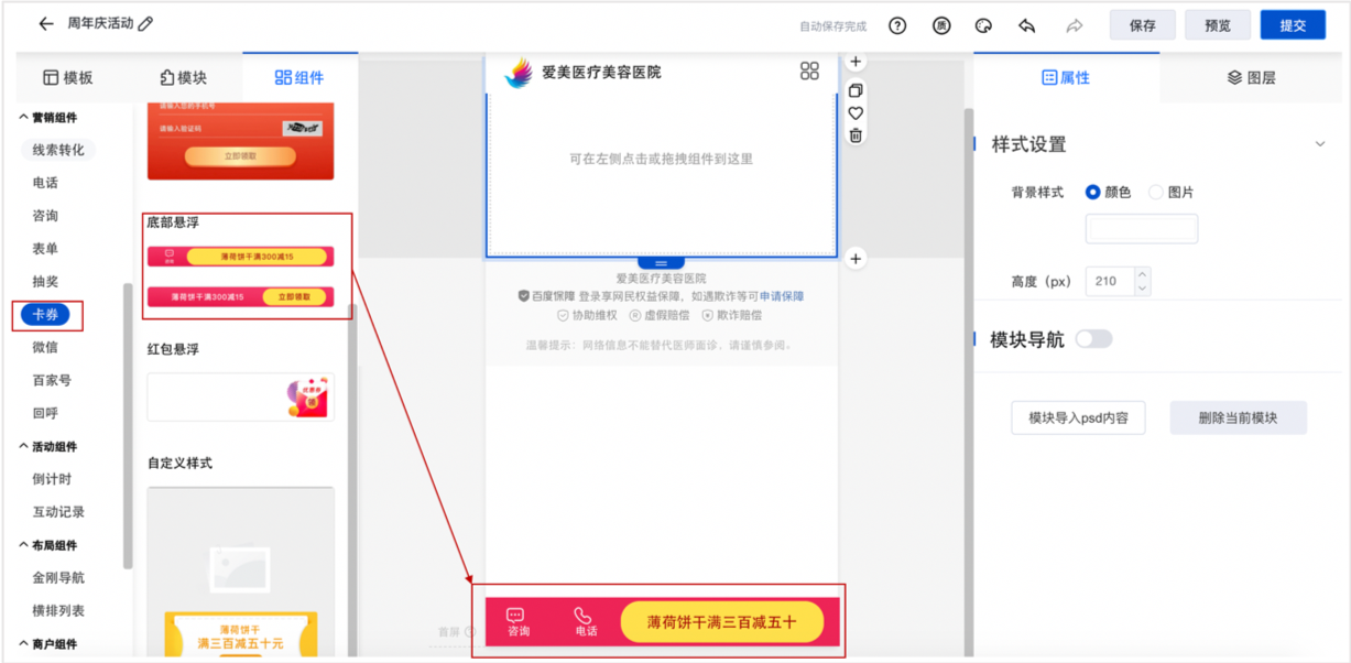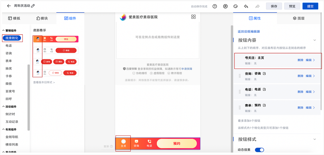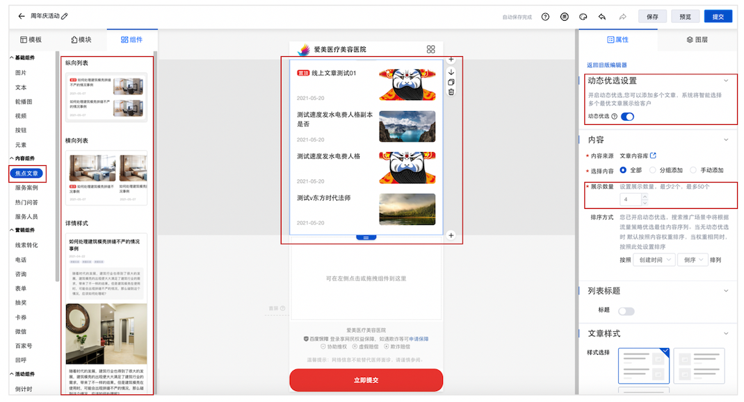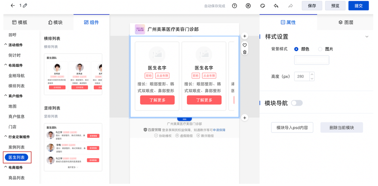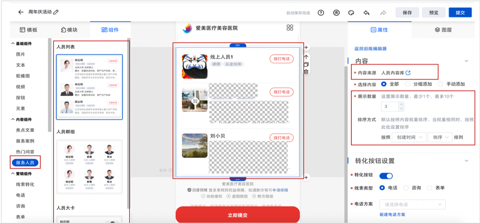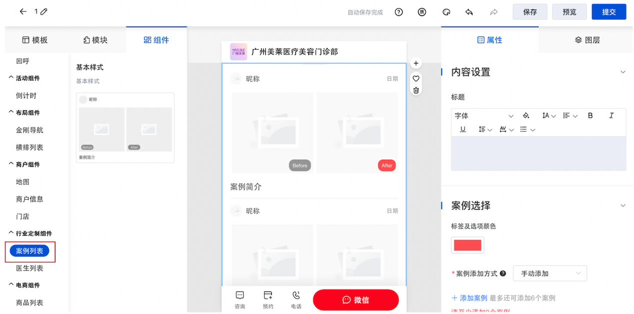 1、基木鱼营销页中行业定制组件-“案例列表”、“医生列表”组件将下线不再支持调用柠檬爱美侧物料,建议客户如有相关展现诉求可以使用内容组件的“服务案例”、“服务人员”组件引用基木鱼中审核通过的物料;