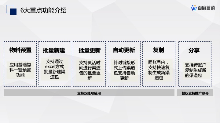 (1)百度账号登录下,提交的渠道包会同步至所有已关联绑定的推广账户下(包含搜索推广和信息流推广);