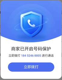为帮助客户打造专业、真实的企业形象,提高网民对智能电话的信任度,营销通智能电话支持号码保护弹窗,告知网民将要拨打的电话为百度平台为此次通话分配的中间号码,以此增进网民信任感,提升拨打意愿。