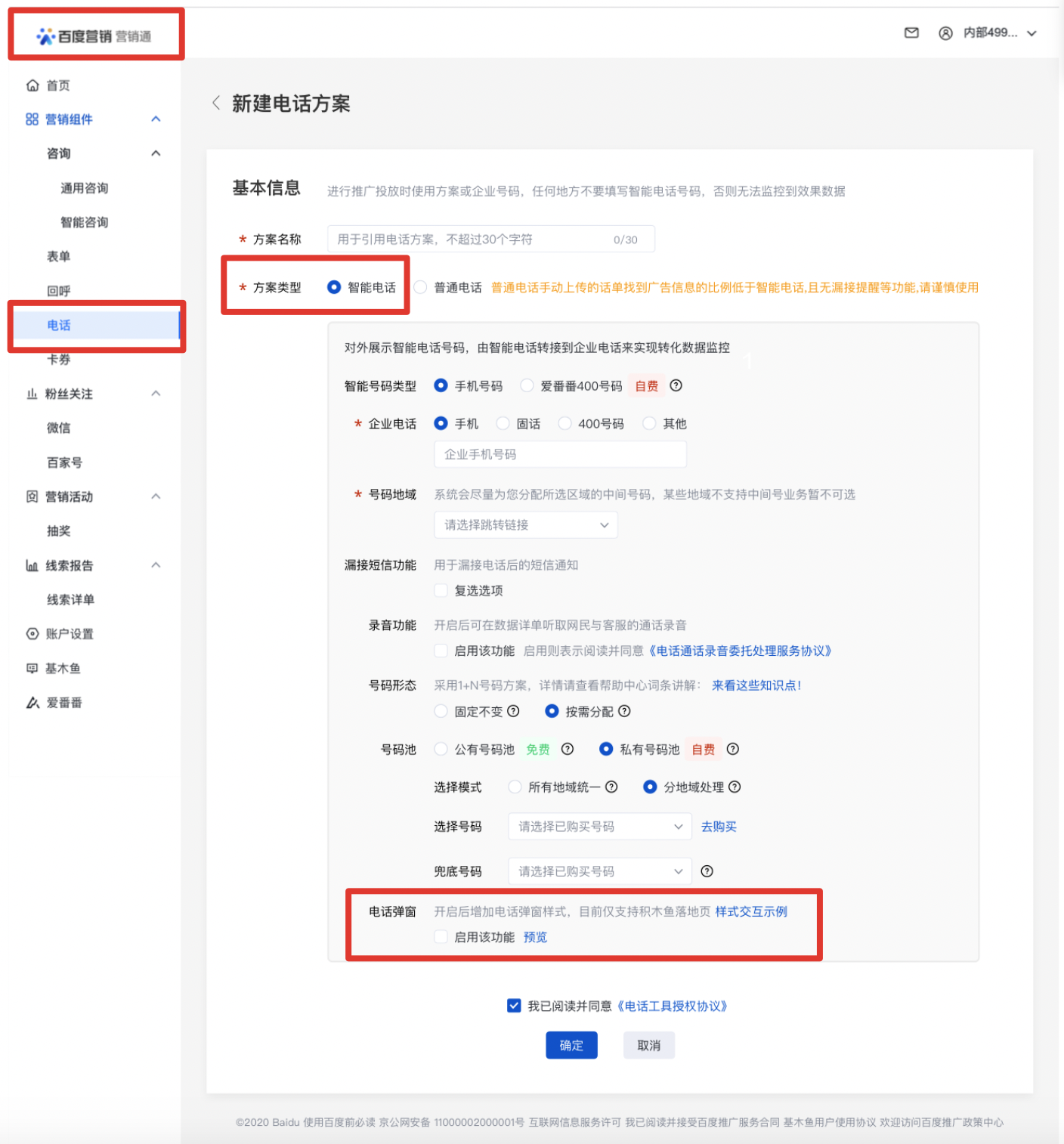 入口:营销通-电话-智能电话-电话弹窗
