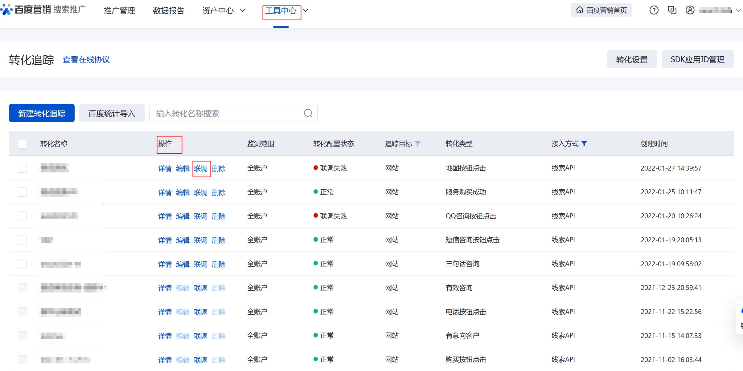 搜索推广转化追踪-线索API联调升级--全流量上线