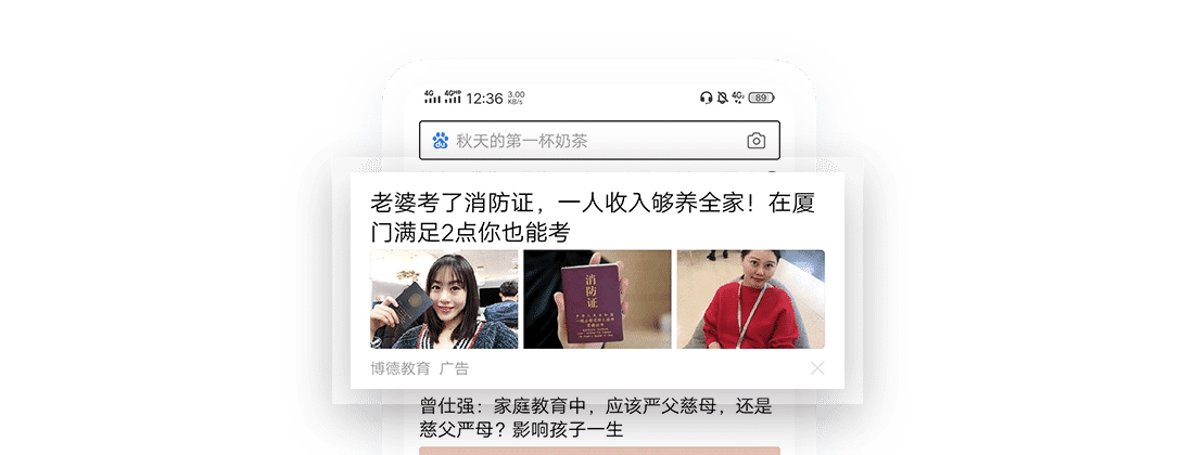 展现位置:百度APP\WAP推荐频道第一、广告位( 1-4刷) 好看视频列表页;贴吧列表页内容页。